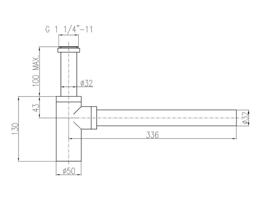 сифон для умывальника 5/4", d32 мм., горизонтальный выпуск 300 мм., металл, цвет золотистый глянцевый, арт. MD0232Z, RAV Slezák