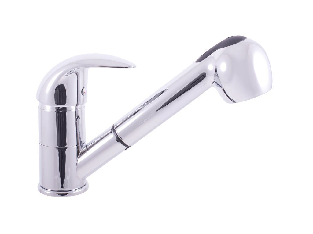Смеситель для мойки на столешницу с выдвижным душем для водонагревателей низкого давления.
