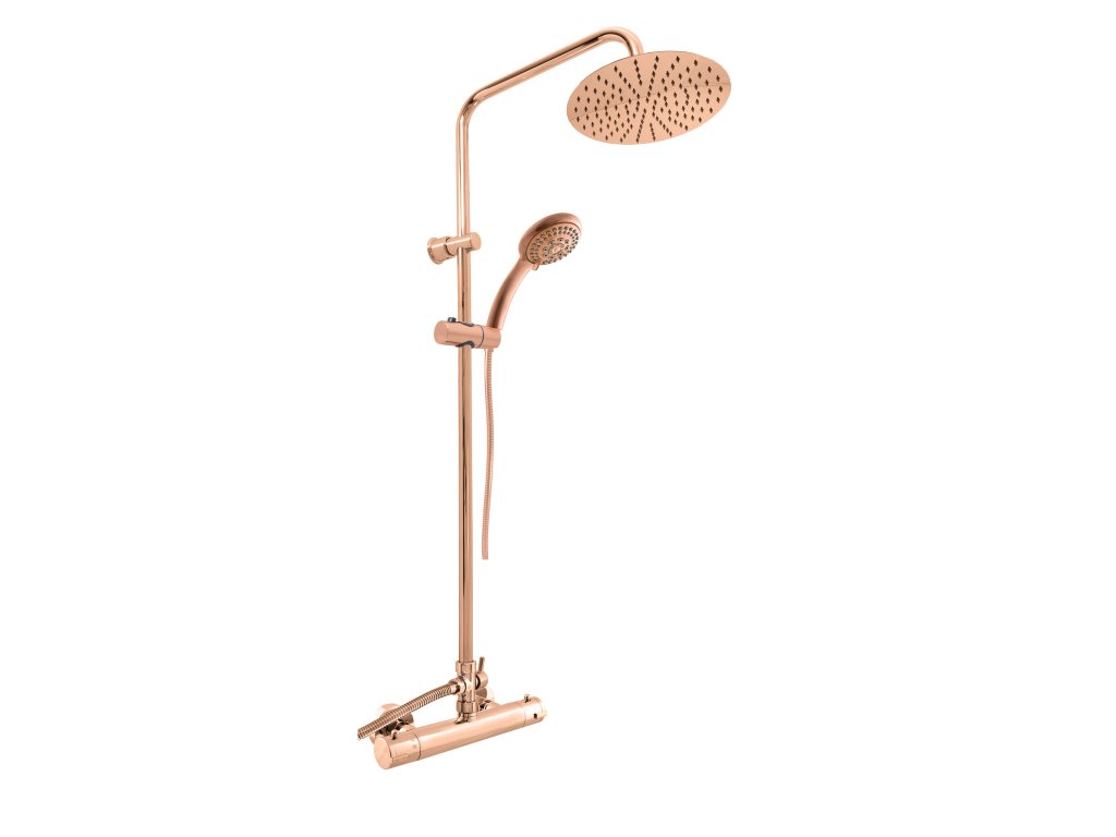 TERMOSTAT - смеситель термостатический для душа с душевым набором и стойкой с головной лейкой, цвет золотисто-розовый глянцевый, арт. TRM81.5/7-01.4ZRL, RAV Slezák