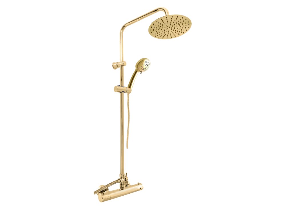 TERMOSTAT - смеситель термостатический для душа с душевым набором и стойкой с головной лейкой, цвет золотистый глянцевый, арт. TRM81.5/7-01.4Z, RAV Slezák