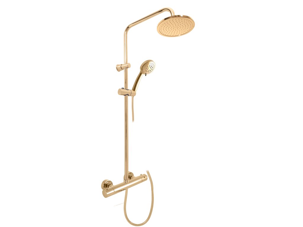 TERMOSTAT - смеситель термостатический для душа с душевым набором и стойкой с головной лейкой, цвет золотистый глянцевый, арт. TRM82.5/7-61Z, RAV Slezák