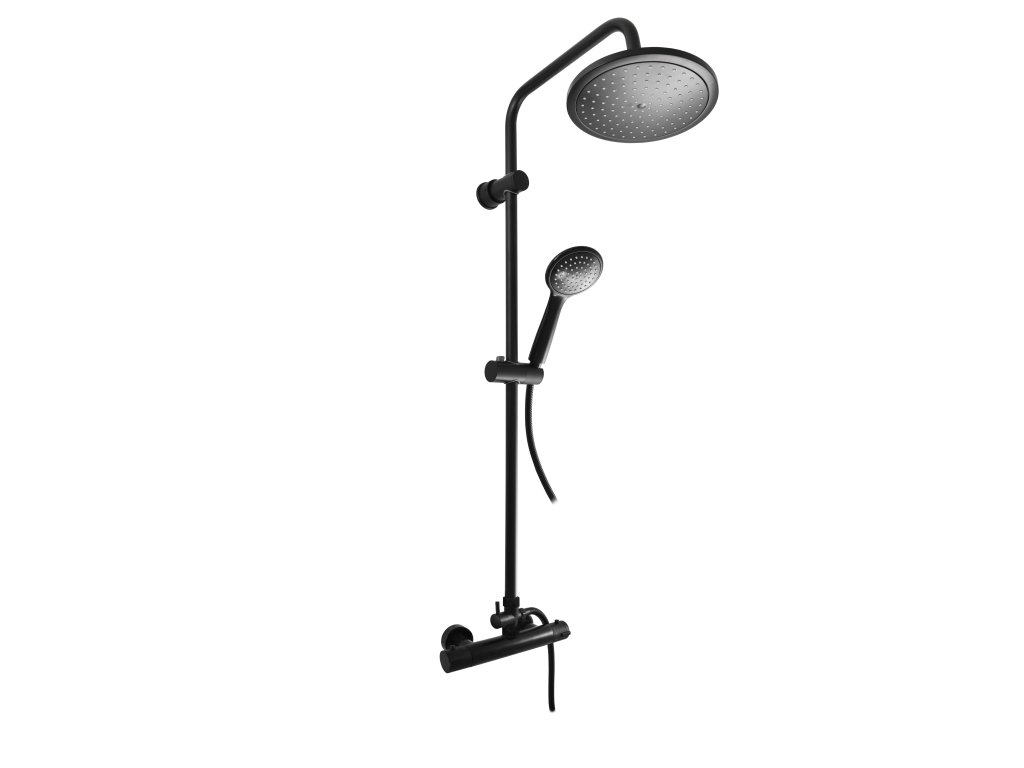 TERMOSTAT - смеситель термостатический для душа с душевым набором и стойкой с головной лейкой, цвет черный матовый, арт. TRM81.5/7CMAT, RAV Slezák