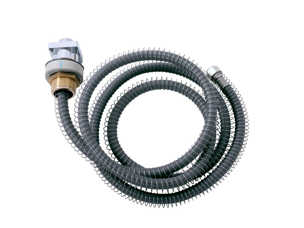 держатель душевой лейки (квадратный) для каскадного смесителя в комплекте со шлангом и пружиной (без душевой лейки), цвет хром, арт. MD0555, RAV Slezák