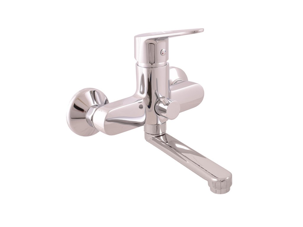 Настенный смеситель для ванны с плоским поворотным рычагом.