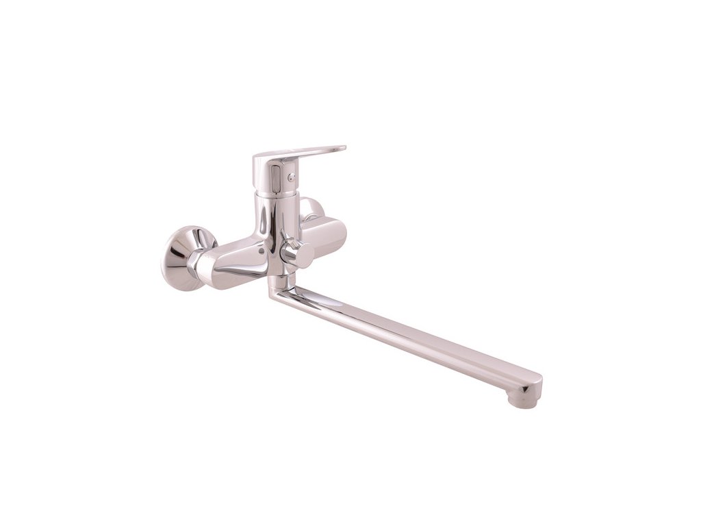 Настенный смеситель для ванны и умывальника с плоским поворотным рычагом.