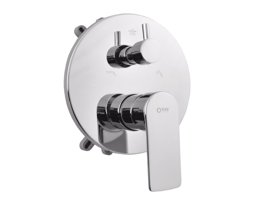 VLTAVA - смеситель для скрытого монтажа, настенный 3-х режимный (поворотный), цвет хром, арт. VT487BOX, RAV Slezák