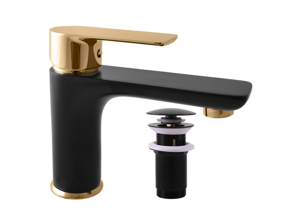 VLTAVA - смеситель для умывальника с донным клапаном (или сифоном CLICK-CLACK), цвет черный матовый/золотистый глянцевый, арт. VT527.5KCMATZ, RAV Slezák