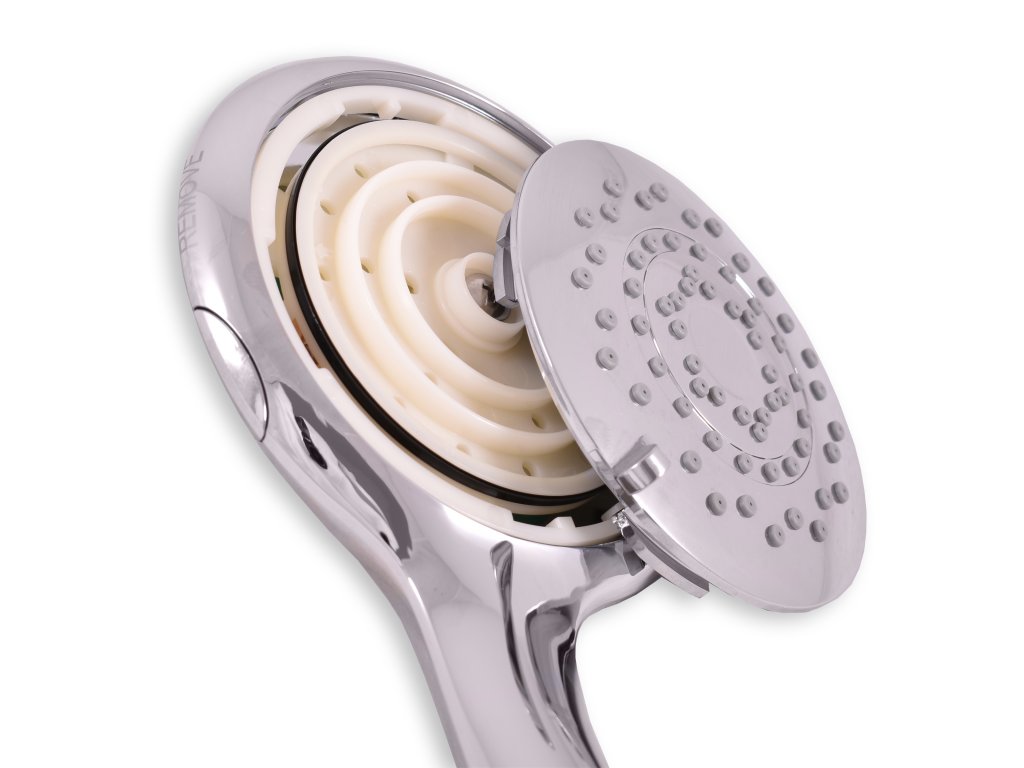 Водосберегающий ручной душ оснащен функцией EasyClean — простой очисткой мелких форсунок душа (образующийся известковый налет легко стирается с поверхности форсунок легким прикосновением).