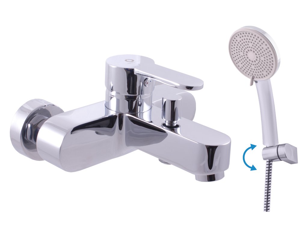 Настенный смеситель для ванны с душем и поворотным держателем.